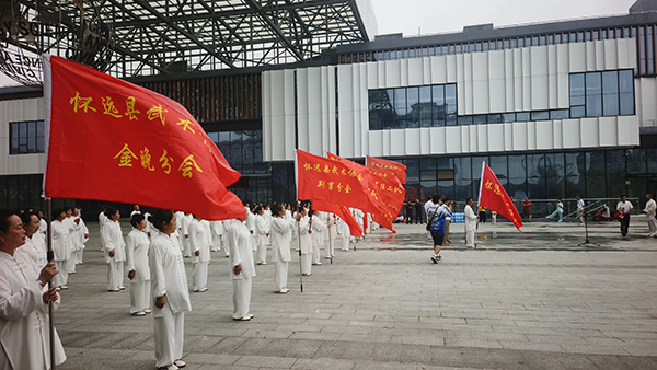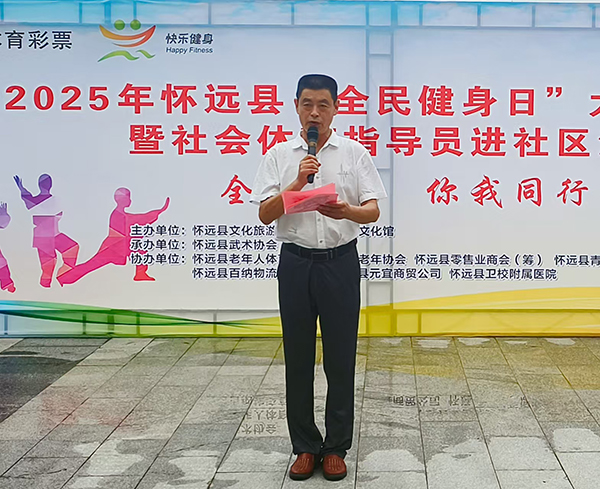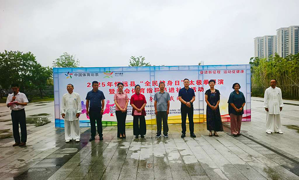 2025年8月2日上午 ,由怀远县文化旅游体育局主办;怀远县文化馆、怀远县武术协会承办;怀远县老年协会、怀远县零售业商会(筹)、怀远县青年志愿者协会、怀远县卫校附属医院协办的【全民健身 你我同行】2025年怀远县开展“全民健身日”太极拳展演暨社会体育指导员进社区主题活动在怀远县文化馆广场隆重举行。