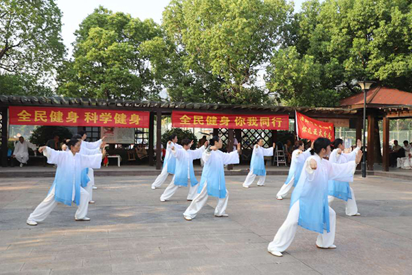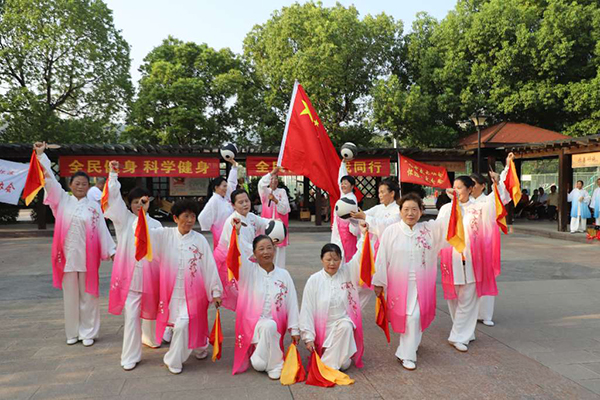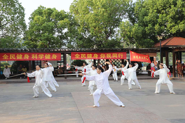 参演人员冒高温、战酷暑,挥汗如雨,但个个精神抖擞,一招一式张弛有度、行云流水,充分展示出表演者的刚柔之美、神韵之美、和谐之美。展演过程中,大家依次展示了下面节目: